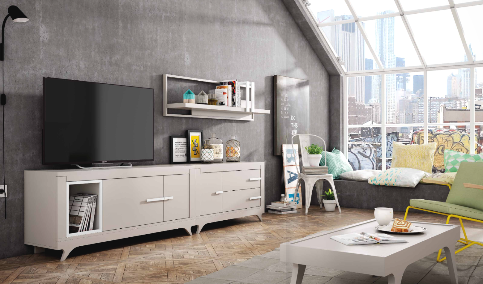 Composición modular salón C11 de la colección Theory fabricado en madera de pino de 2.84 mts, disponible en varios colores y consta modulo 1p 1c contenedor 1h de 142x52x40 cm, bancada nordica de 142x10x40 cm, modulo 1p 2c de 110x52x40 cm, bancada nordica de 110x10x40 cm y modulo alto estantes horizontalon led de 110x39x23 cm. COLORES COMPOSICION: C-130 y T-5. TIRADOR: 16 C-130.