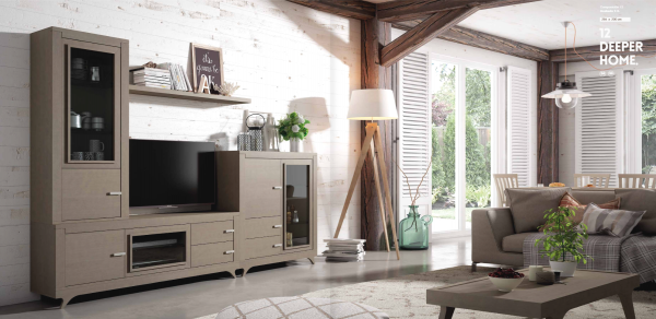 Composición modular salón C12 de la colección Theory fabricado en madera de pino de 2.84 mts, disponible en varios colores y consta modulo 1p 1p cristal abatible 2c de 174x52x40 cm, bancada nordica de 174x10x40 cm, modulo contenedor 1p 1p cristal 2c de 110x110x40 cm, bancada nordica de 110x10x40 cm, modulo alto 1p cristal 1p izdo y balda estante de 140x20x4 cm. COLORES COMPOSICION: T-3. TIRADOR: 16 PLATA.