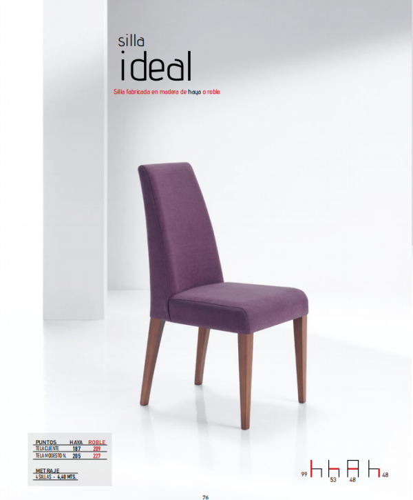 Silla de diseño mod. IDEAL PLUS de 48x53x99 en madera de haya. Lo mejor de esta silla es la posibilidad de pintarla en cualquier color a juego con mobiliario de cualquier fabricante, igualmente con las telas a elegir de cualquier marca, el asiento es de espuma de alta densidad, 3 años de garantia y disponible en sillón, consultar precio.